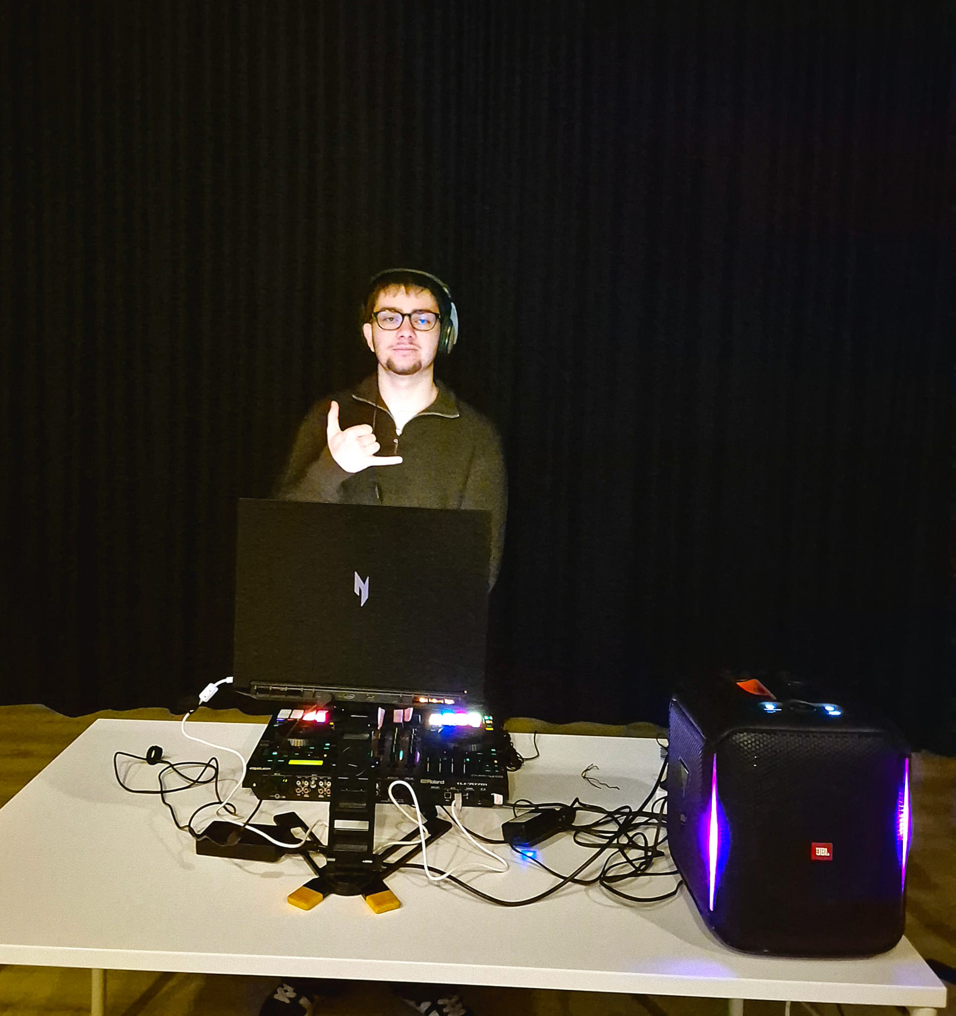 Setäni inspiroi, opetti ja rohkaisi minua kuuntelemaan musiikkia eri tavalla, tuntemaan rytmin ja ottamaan tämän työn vakavasti. Opin katsomalla, kuinka hän miksaa kappaleita ja kontrolloi yleisöä. Joskus sain itse leikkiä hieman laitteilla ja kokeilla. Keväällä 2025 soitin ensimmäiset soolokeikkani Terassilla. Valmistelin tekniikan, valitsin musiikin ja jopa johdin itse juontajana. Sain paljon hyvää palautetta. Tajusin, että olin oikeasti oppinut paljon ja saanut hyvän pohjan kehittyä vielä pidemmälle. Tästä alkaa DJ/juontaja/viihdyttäjän polkuni.